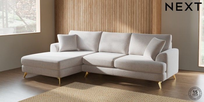 7.2.6 Buy Parker Large Sofa Chaise - Left Hand Multi Weave Oyster High Metal - Brass from the Next UK online shop Click here to use our accessible website