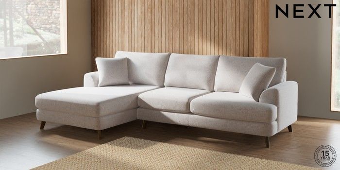 7.2.6 Buy Parker Large Sofa Chaise - Left Hand Multi Weave Oyster Low Retro Tapered - Mid from the Next UK online shop Click here to use our accessible website