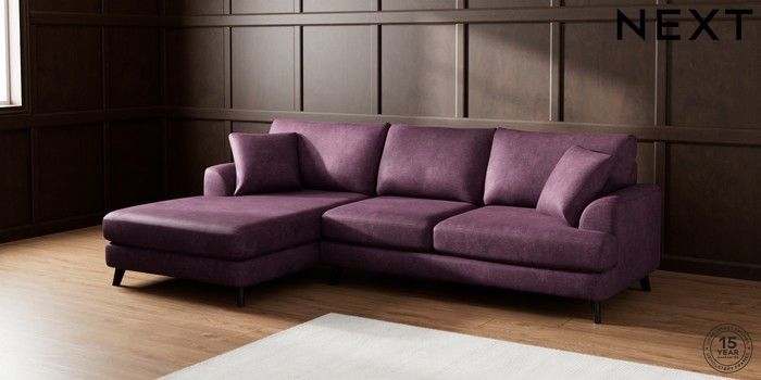 7.2.5 Buy Parker Large Sofa Chaise - Left Hand Plush Chenille Dark Plum Purple Low Retro Tapered - Dark from the Next UK online shop Click here to use our accessible website