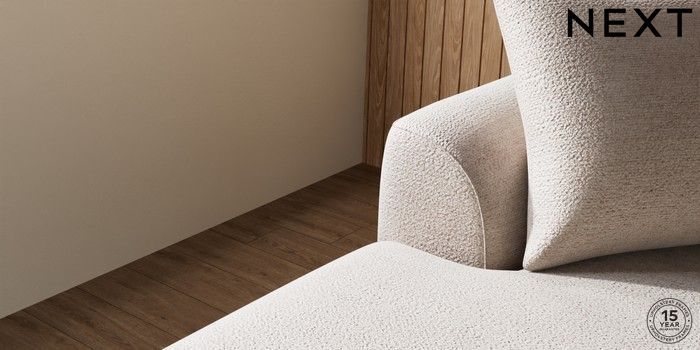7.2.6 Buy Parker Large Sofa Chaise - Left Hand Boucle Chenille Light Natural Low Retro Tapered - Light from the Next UK online shop Click here to use our accessible website