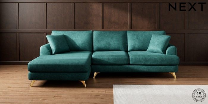 7.3.1 Buy Parker Large Sofa Chaise - Left Hand Plush Chenille Dark Teal Green High Metal - Brass from the Next UK online shop Click here to use our accessible website