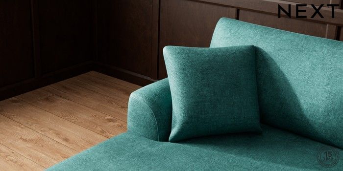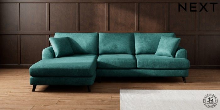 7.3.1 Buy Parker Large Sofa Chaise - Left Hand Plush Chenille Dark Teal Green Low Retro Tapered - Dark from the Next UK online shop Click here to use our accessible website