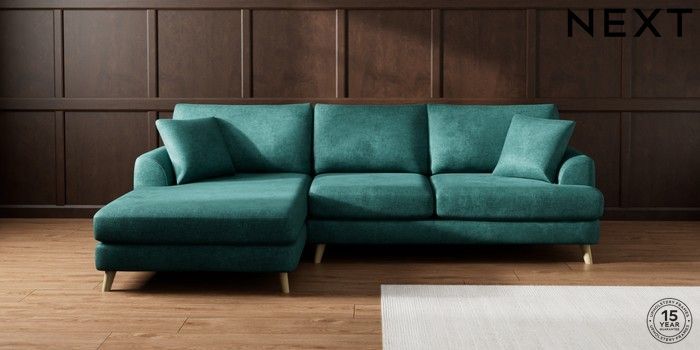 7.3.1 Buy Parker Large Sofa Chaise - Left Hand Plush Chenille Dark Teal Green Low Retro Tapered - Light from the Next UK online shop Click here to use our accessible website
