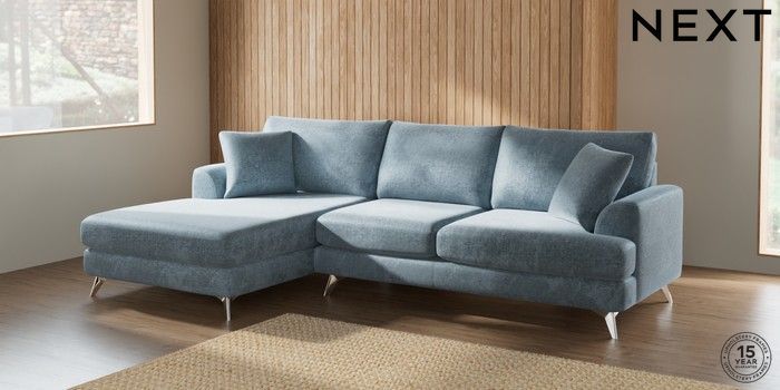 7.2.6 Buy Parker Large Sofa Chaise - Left Hand Plush Chenille Light Blue High Metal - Chrome from the Next UK online shop Click here to use our accessible website