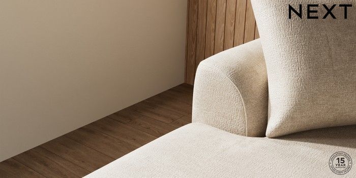 7.2.10 Buy Parker Large Sofa Chaise - Left Hand Plush Chenille Light Natural Low Retro Tapered - Dark from the Next UK online shop Click here to use our accessible website