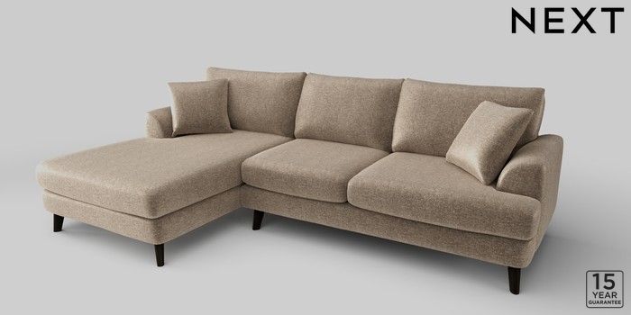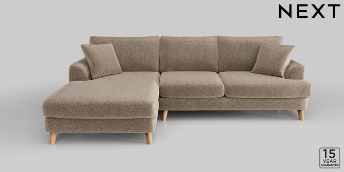6.12.1 Buy Parker Large Sofa Chaise - Left Hand Plush Chenille Mid Natural Low Retro Tapered - Dark from the Next UK online shop Click here to use our accessible website