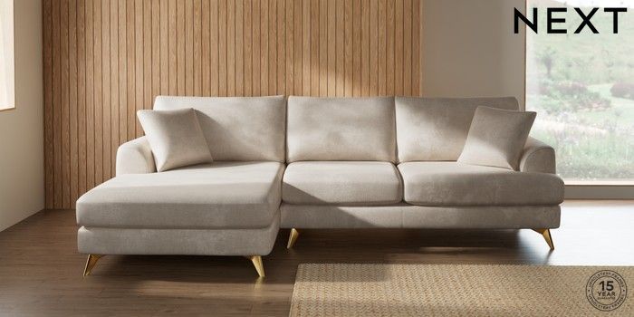 7.2.10 Buy Parker Large Sofa Chaise - Left Hand Plush Chenille Oyster High Metal - Brass from the Next UK online shop Click here to use our accessible website