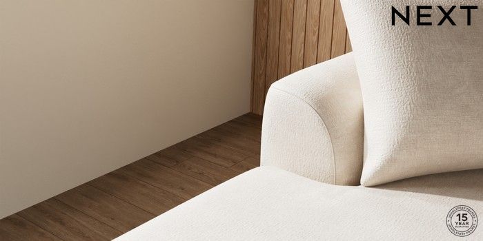 7.2.10 Buy Parker Large Sofa Chaise - Left Hand Plush Chenille Oyster Low Retro Tapered - Mid from the Next UK online shop Click here to use our accessible website