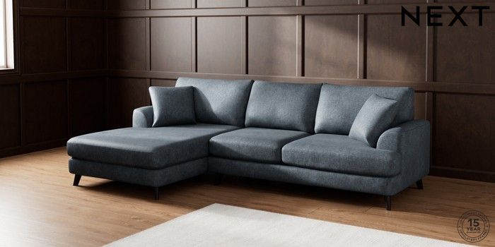 7.2.6 Buy Parker Large Sofa Chaise - Left Hand Plush Chenille Slate Blue Low Retro Tapered - Dark from the Next UK online shop Click here to use our accessible website