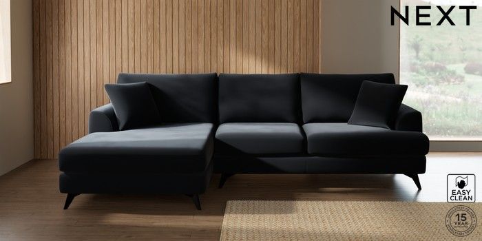 7.3.1 Buy Parker Large Sofa Chaise - Left Hand Plush Velvet Easy Clean Charcoal Grey High Metal - Black from the Next UK online shop Click here to use our accessible website
