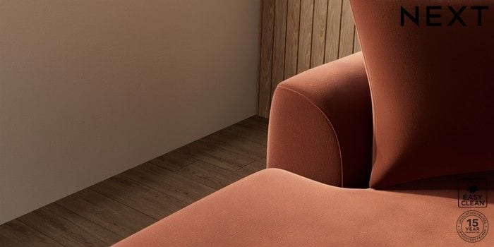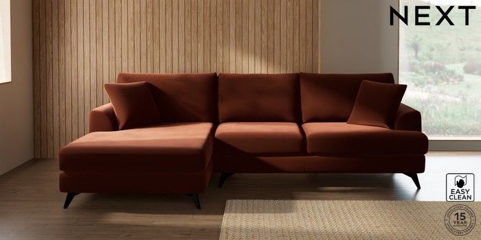 7.3.1 Buy Parker Large Sofa Chaise - Left Hand Plush Velvet Easy Clean Ginger Orange High Metal - Black from the Next UK online shop Click here to use our accessible website