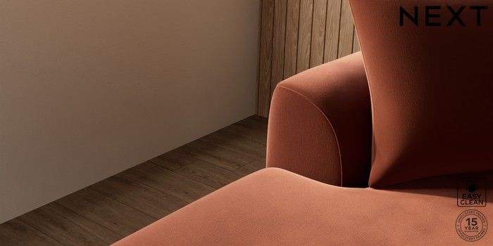 7.3.1 Buy Parker Large Sofa Chaise - Left Hand Plush Velvet Easy Clean Ginger Orange High Metal - Brass from the Next UK online shop Click here to use our accessible website