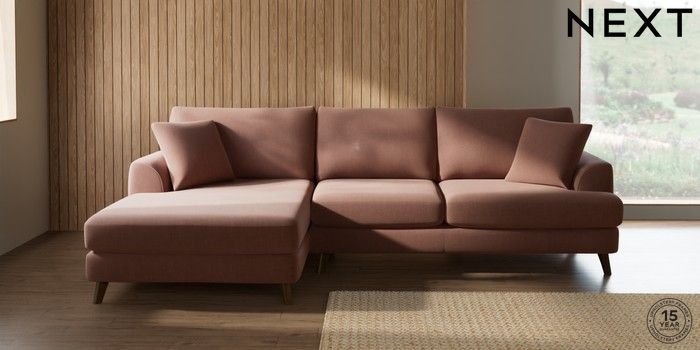 7.2.10 Buy Parker Large Sofa Chaise - Left Hand Relaxed Linen Look Light Rust Brown Low Retro Tapered - Mid from the Next UK online shop Click here to use our accessible website