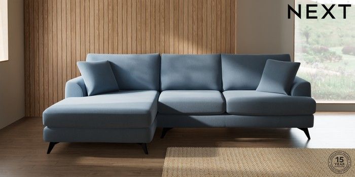 7.3.1 Buy Parker Large Sofa Chaise - Left Hand Relaxed Linen Look Mid Blue High Metal - Black from the Next UK online shop Click here to use our accessible website
