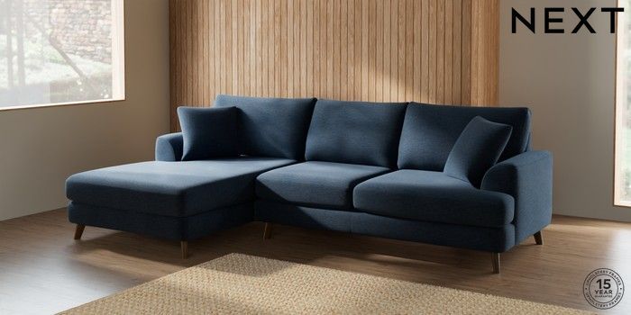 7.0.3 Buy Parker Large Sofa Chaise - Left Hand Ripple Chenille Dark Blue Low Retro Tapered - Mid from the Next UK online shop Click here to use our accessible website
