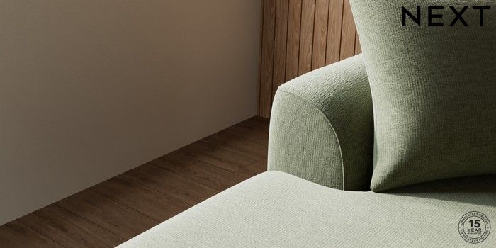 7.3.1 Buy Parker Large Sofa Chaise - Left Hand Ripple Chenille Mid Moss Green Low Retro Tapered - Dark from the Next UK online shop Click here to use our accessible website