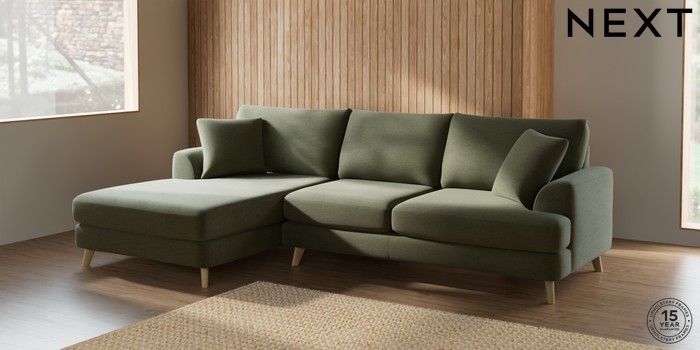 7.2.5 Buy Parker Large Sofa Chaise - Left Hand Ripple Chenille Mid Moss Green Low Retro Tapered - Light from the Next UK online shop Click here to use our accessible website