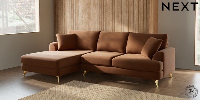 7.2.5 Buy Parker Large Sofa Chaise - Left Hand Ripple Chenille Mid Rust Brown High Metal - Brass from the Next UK online shop Click here to use our accessible website