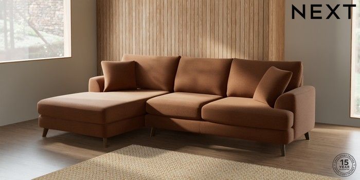7.2.5 Buy Parker Large Sofa Chaise - Left Hand Ripple Chenille Mid Rust Brown Low Retro Tapered - Mid from the Next UK online shop Click here to use our accessible website