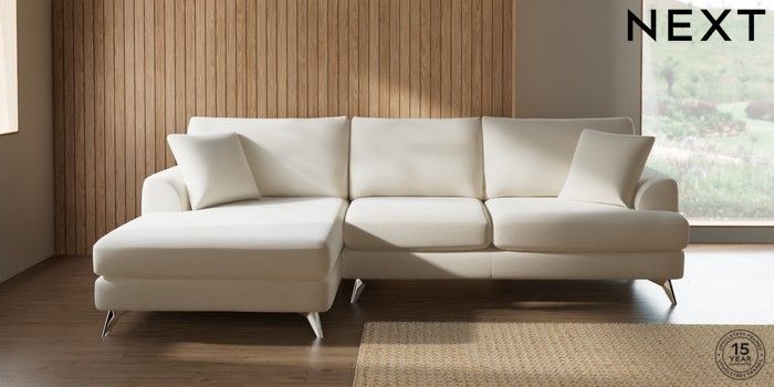 7.2.10 Buy Parker Large Sofa Chaise - Left Hand Ripple Chenille Oyster High Metal - Chrome from the Next UK online shop Click here to use our accessible website