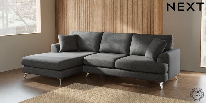 7.2.5 Buy Parker Large Sofa Chaise - Left Hand Tweedy Chenille Dark Grey High Metal - Chrome from the Next UK online shop Click here to use our accessible website