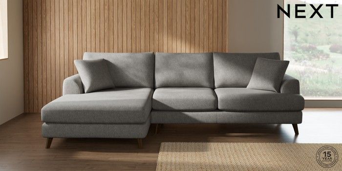 7.2.10 Buy Parker Large Sofa Chaise - Left Hand Tweedy Chenille Mid Grey Low Retro Tapered - Mid from the Next UK online shop Click here to use our accessible website