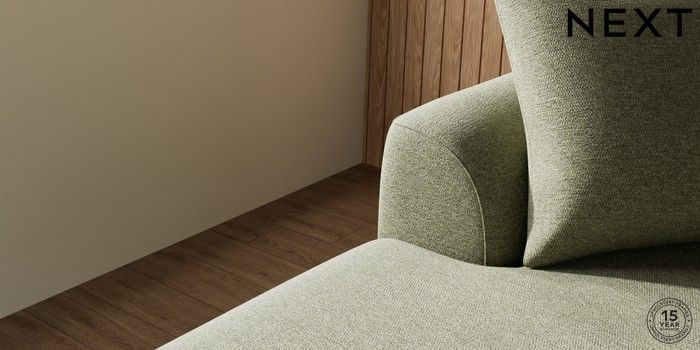 7.3.1 Buy Parker Large Sofa Chaise - Left Hand Tweedy Chenille Mid Moss Green High Metal - Chrome from the Next UK online shop Click here to use our accessible website