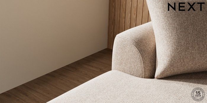 7.3.1 Buy Parker Large Sofa Chaise - Left Hand Tweedy Chenille Mid Natural High Metal - Brass from the Next UK online shop Click here to use our accessible website