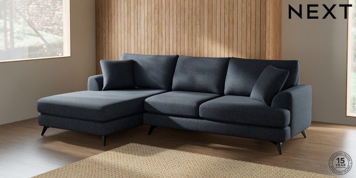 7.2.5 Buy Parker Large Sofa Chaise - Left Hand Tweedy Chenille Navy Blue High Metal - Black from the Next UK online shop Click here to use our accessible website