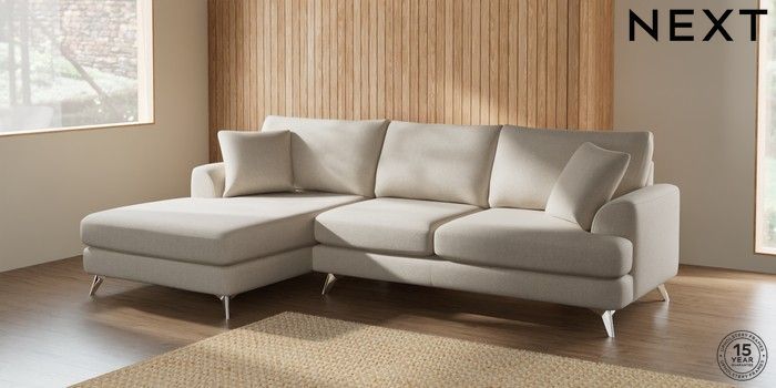 7.2.5 Buy Parker Large Sofa Chaise - Left Hand Tweedy Chenille Oyster High Metal - Chrome from the Next UK online shop Click here to use our accessible website