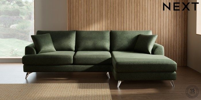 7.3.1 Buy Parker Large Sofa Chaise - Right Hand Boucle Chenille Dark Moss Green High Metal - Chrome from the Next UK online shop Click here to use our accessible website