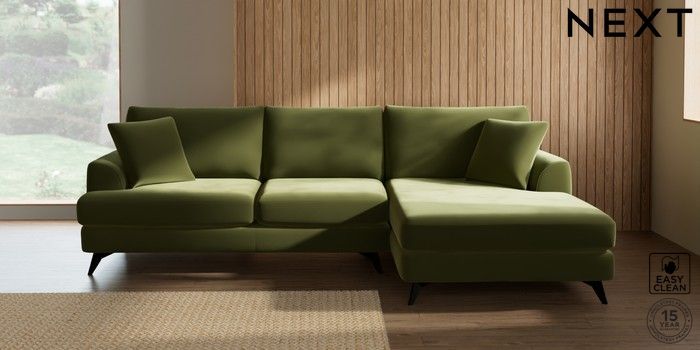 7.3.1 Buy Parker Large Sofa Chaise - Right Hand Plush Velvet Easy Clean Mid Olive Green High Metal - Black from the Next UK online shop Click here to use our accessible website