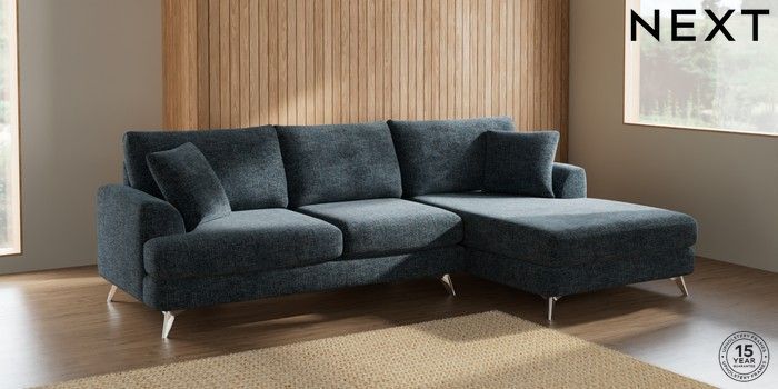 7.2.5 Buy Parker Large Sofa Chaise - Right Hand Chunky Chenille Dark Navy Blue High Metal - Chrome from the Next UK online shop Click here to use our accessible website