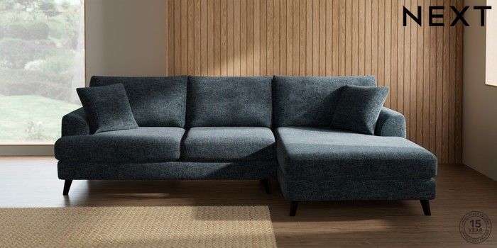 7.3.1 Buy Parker Large Sofa Chaise - Right Hand Chunky Chenille Dark Navy Blue Low Retro Tapered - Dark from the Next UK online shop Click here to use our accessible website