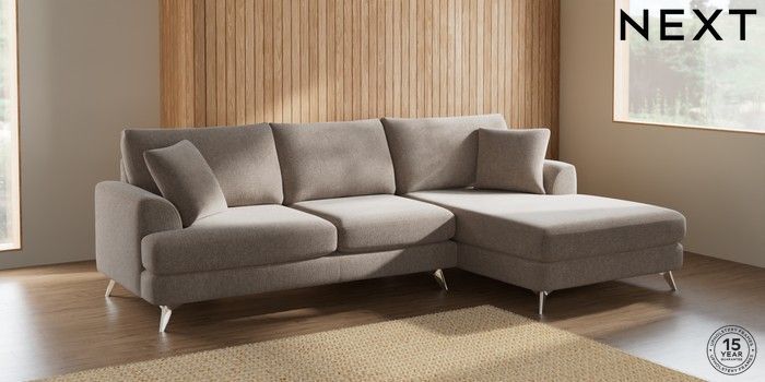 7.2.5 Buy Parker Large Sofa Chaise - Right Hand Chunky Chenille Light Dove High Metal - Chrome from the Next UK online shop Click here to use our accessible website