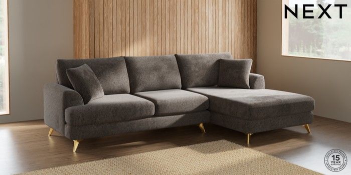 7.2.5 Buy Parker Large Sofa Chaise - Right Hand Chunky Chenille Mink Brown High Metal - Brass from the Next UK online shop Click here to use our accessible website