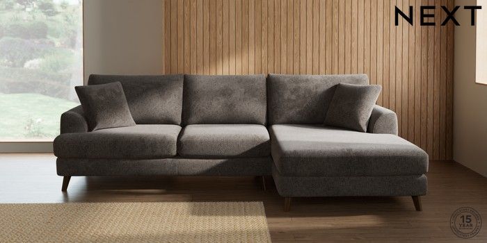 7.2.10 Buy Parker Large Sofa Chaise - Right Hand Chunky Chenille Mink Brown Low Retro Tapered - Mid from the Next UK online shop Click here to use our accessible website