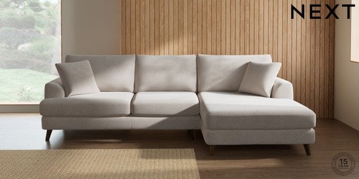 7.2.10 Buy Parker Large Sofa Chaise - Right Hand Chunky Chenille Oyster Low Retro Tapered - Mid from the Next UK online shop Click here to use our accessible website