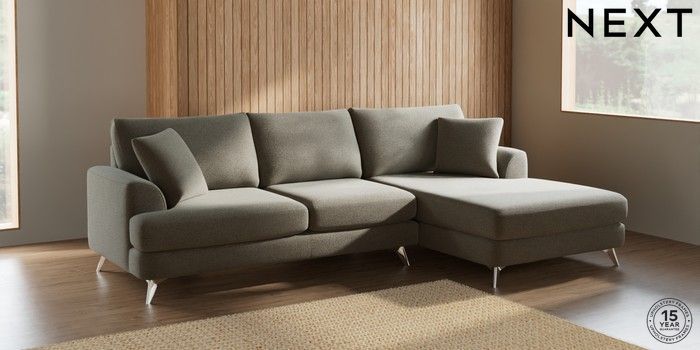 7.2.5 Buy Parker Large Sofa Chaise - Right Hand Chunky Marl Light Olive Green High Metal - Chrome from the Next UK online shop Click here to use our accessible website