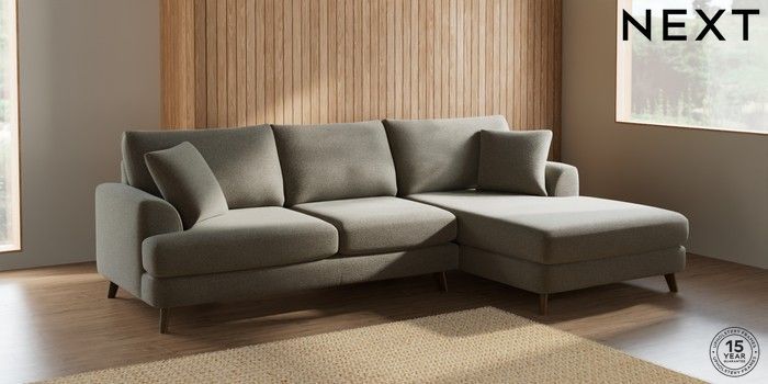 7.2.5 Buy Parker Large Sofa Chaise - Right Hand Chunky Marl Light Olive Green Low Retro Tapered - Mid from the Next UK online shop Click here to use our accessible website