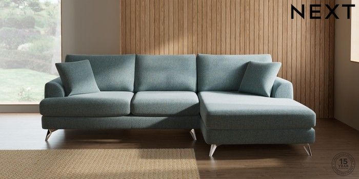 7.2.10 Buy Parker Large Sofa Chaise - Right Hand Chunky Marl Mid Blue High Metal - Chrome from the Next UK online shop Click here to use our accessible website