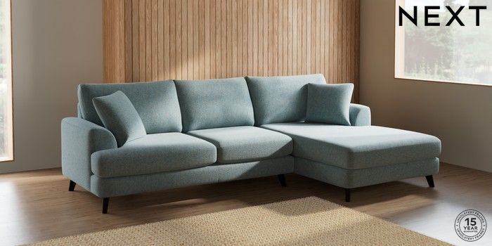 7.2.5 Buy Parker Large Sofa Chaise - Right Hand Chunky Marl Mid Blue Low Retro Tapered - Dark from the Next UK online shop Click here to use our accessible website