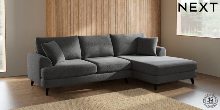 7.2.5 Buy Parker Large Sofa Chaise - Right Hand Chunky Texture Dark Grey Low Retro Tapered - Dark from the Next UK online shop Click here to use our accessible website