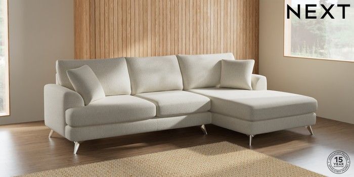 7.2.5 Buy Parker Large Sofa Chaise - Right Hand Chunky Texture Oyster High Metal - Chrome from the Next UK online shop Click here to use our accessible website