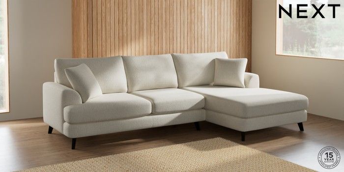 7.2.5 Buy Parker Large Sofa Chaise - Right Hand Chunky Texture Oyster Low Retro Tapered - Dark from the Next UK online shop Click here to use our accessible website