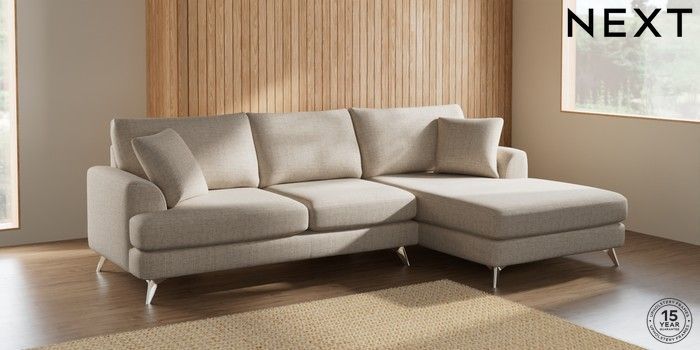 7.2.5 Buy Parker Large Sofa Chaise - Right Hand Chunky Weave Mid Natural High Metal - Chrome from the Next UK online shop Click here to use our accessible website