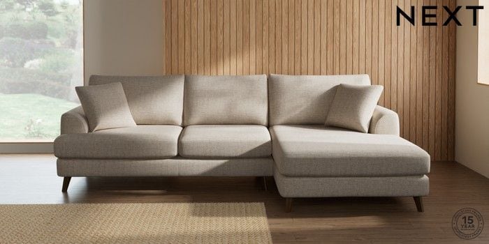 7.2.10 Buy Parker Large Sofa Chaise - Right Hand Chunky Weave Mid Natural Low Retro Tapered - Mid from the Next UK online shop Click here to use our accessible website