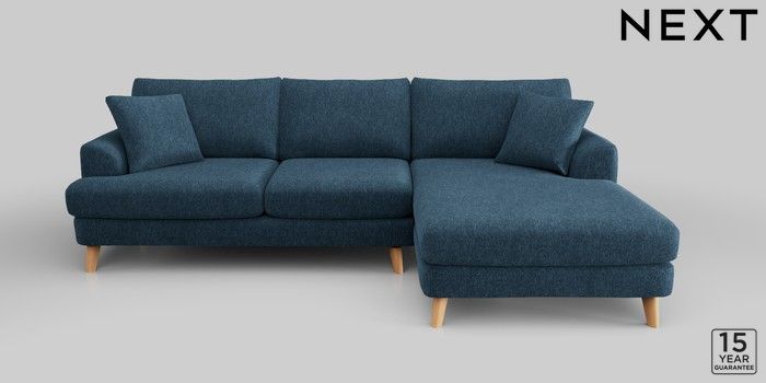 6.12.1 Buy Parker Large Sofa Chaise - Right Hand Cotswold Chenille Dark Blue Low Retro Tapered - Light from the Next UK online shop Click here to use our accessible website