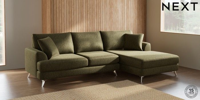 7.2.5 Buy Parker Large Sofa Chaise - Right Hand Cotswold Chenille Dark Green High Metal - Chrome from the Next UK online shop Click here to use our accessible website