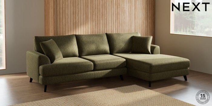 7.2.5 Buy Parker Large Sofa Chaise - Right Hand Cotswold Chenille Dark Green Low Retro Tapered - Dark from the Next UK online shop Click here to use our accessible website